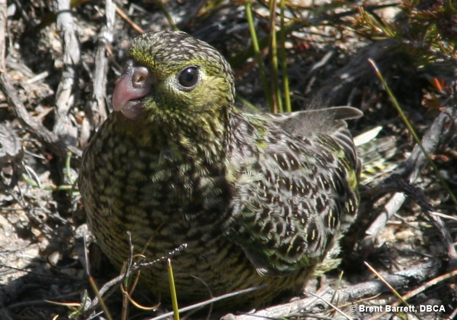 Very little is known about the parrot’s breeding habits in the wild with the last active nest discovered in 1913. It was described as a slight depression among low prickly vegetation containing 3 eggs. Fledglings have since been recorded between September and November. The young leave the nest before they have reached their full flying capabilities.